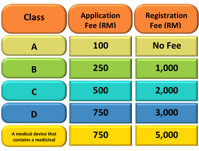 MDA審核時(shí)間視情況而定,大約需要1至6個(gè)月。不同類別的產(chǎn)品收費(fèi)不同,具體費(fèi)用參見下圖。在注冊(cè)通過之后,獲得的注冊(cè)證有效期為五年