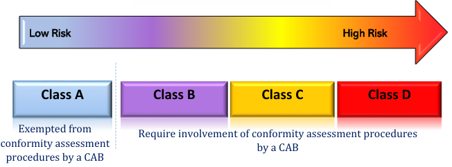 馬來西亞采用基于風(fēng)險(xiǎn)的分類系統(tǒng),將醫(yī)療器械分為 A、B、C、D 四個(gè)等級(jí):