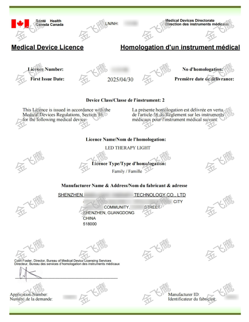 近日,金飛鷹輔導(dǎo)的深圳一家企業(yè)成功拿到LED理療燈(LED THERAPY LIGHT)的加拿大MDL證書,這不僅是客戶產(chǎn)品進(jìn)軍加拿大市場(chǎng)的必備通行證,更是金飛鷹專業(yè)實(shí)力的又一次有力證明!