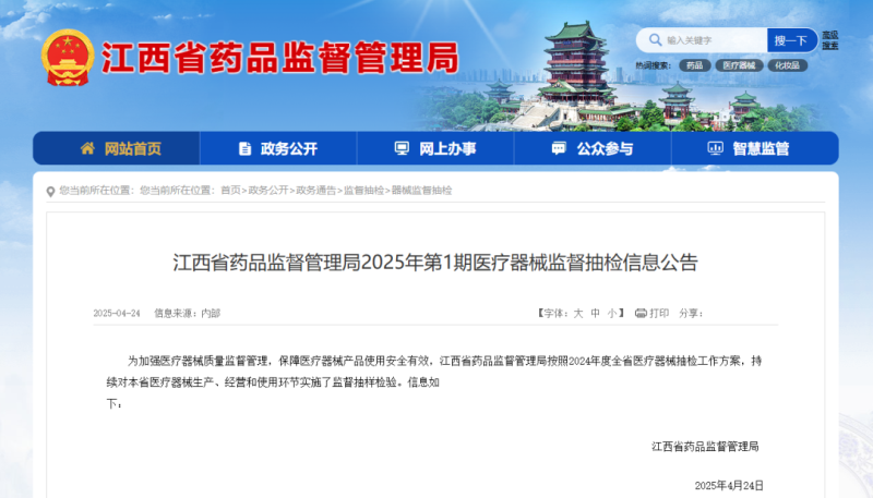 江西藥監局抽檢:醫用冷敷貼等12批次產品不符合標準規定