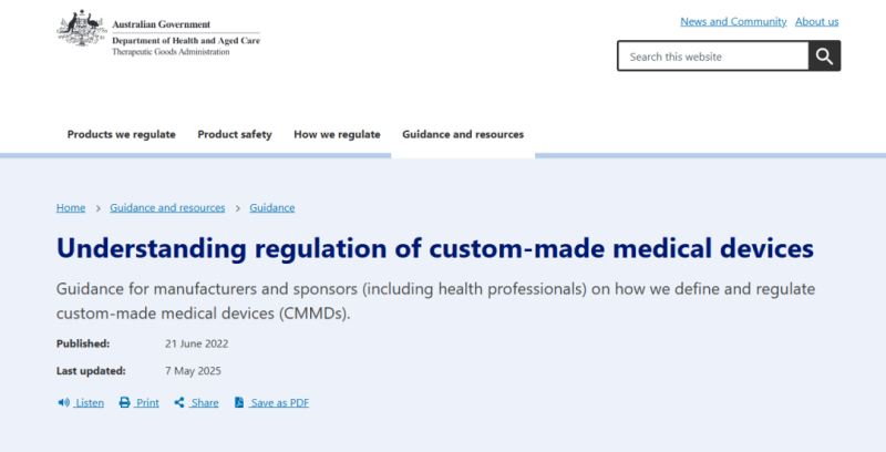 近日,澳大利亞TGA發布Understanding regulation of custom-made medical devices,從定制醫療器械的定義、法規概述、書面聲明、記錄保存要求、年報、廣告規則、不良事件報告、檢查和審查等方面分別進行了詳細闡述,旨在為制造商和申辦方(包括衛生專業人員)提供關于TGA如何定義和監管定制醫療器械的指南。