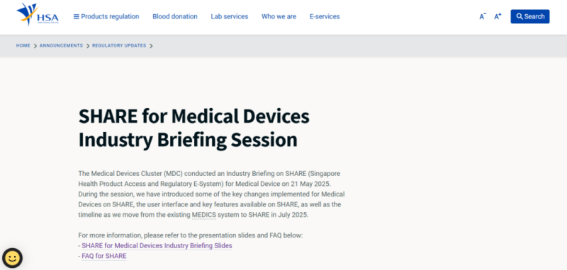 近日,新加坡HSA發布了有關醫療器械注冊提交新系統SHARE(Singapore Health Product Access and Regulatory E-System)的公告,介紹了SHARE與原有MEDICS系統相比的一些關鍵變化、SHARE上可用的用戶界面和主要功能,同時給出了有關SHARE逐步推進使用的關鍵時間線。