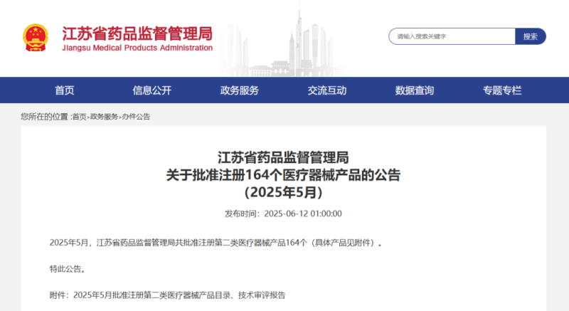作為全國擁有醫療器械注冊證數量最多的省份,江蘇省藥監局除了定期公開每月批準注冊的產品目錄外,還會同時對這些產品的技術審評報告進行公開。