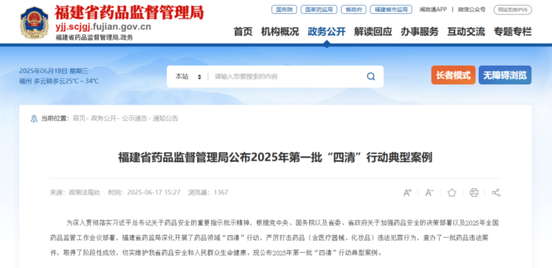 6月17日,福建省藥監(jiān)局公布《2025年第一批“四清”行動(dòng)典型案例》,涉及“兩品一械領(lǐng)域共計(jì)10個(gè)違法案例,其中與醫(yī)療器械相關(guān)的案例如下: