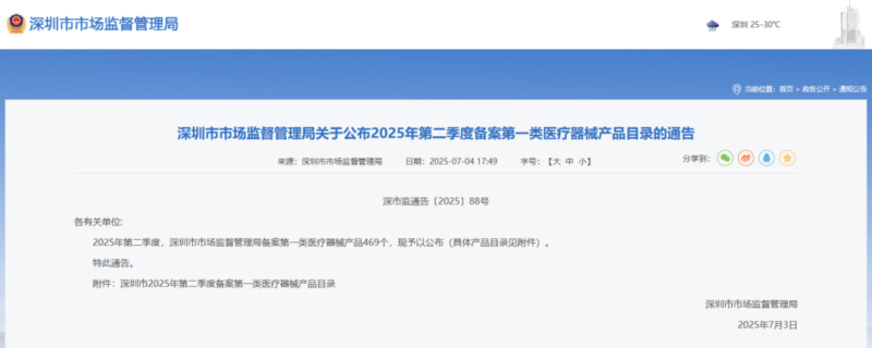 另據該局公告,2025年第一季度,在深圳市市場監(jiān)督管理局備案的第一類醫(yī)療器械共有321個,也就是說,2025年前兩個季度共完成近800個產品備案,也側面反映了市場需求之多。如您的企業(yè)有一類醫(yī)療器械產品備案需求,歡迎隨時聯(lián)系我們咨詢!