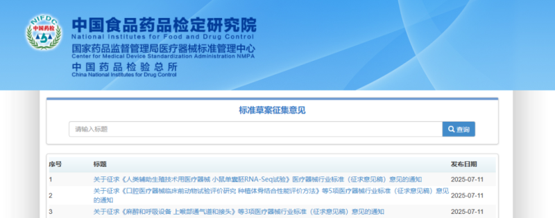 7月11日,國家藥監局醫療器械標準管理中心發布3則關于征求醫療器械行業標準意見的通知,通知顯示,近期共有9標準形成了征求意見稿,具體明細如下: