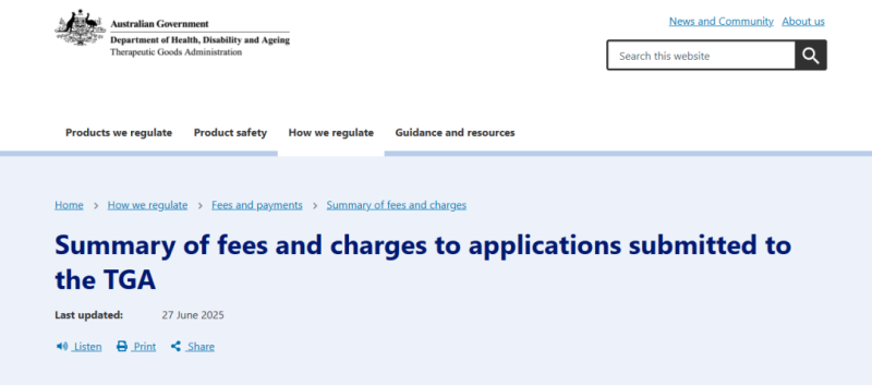 近日,澳大利亞TGA更新了2025年7月起(新的財年)的費用和收費摘要,涉及Therapeutic Goods Act 1989范圍內(nèi)所有活動的費用,我們對其中大家最為關(guān)注的醫(yī)療器械(包括體外診斷試劑)收費部分進(jìn)行重點轉(zhuǎn)載: