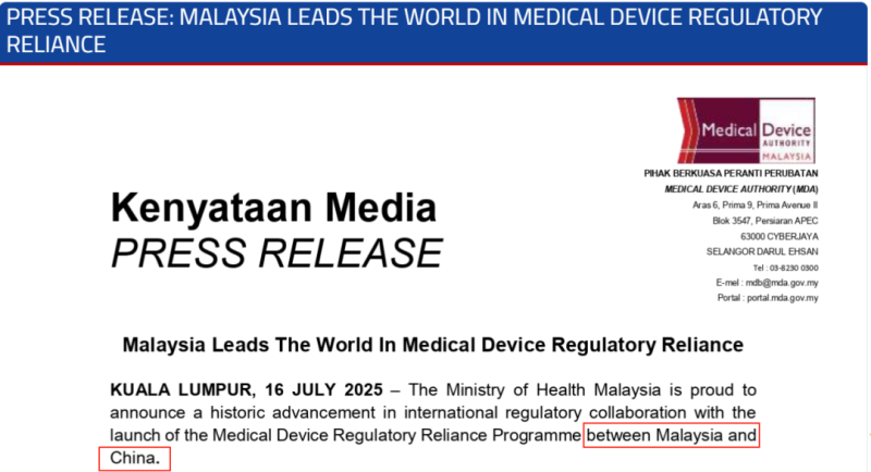 近日,馬來(lái)西亞MDA推出了馬來(lái)西亞與中國(guó)之間的醫(yī)療器械監(jiān)管互信計(jì)劃,該計(jì)劃提到,中國(guó)醫(yī)療器械產(chǎn)品憑NMPA認(rèn)證可通過(guò)馬來(lái)西亞“驗(yàn)證通道”(Verification Pathway)30個(gè)工作日極速獲批,而馬來(lái)西亞IVD產(chǎn)品也可經(jīng)中國(guó)“綠色通道”(Green Channel)60個(gè)工作日準(zhǔn)入中國(guó)市場(chǎng),計(jì)劃將于2025年7月30日正式啟動(dòng)。
