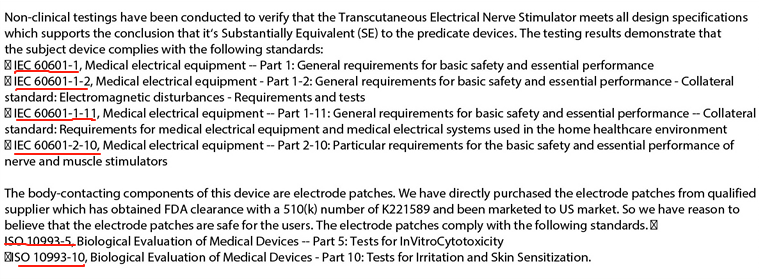有源部分(安規(guī)&EMC)主要涉及的標準有IEC 60601-1、IEC 60601-1-2、IEC 60601-1-11、IEC 60601-2-10;而生物學部分(針對電極片)足以涉及的是ISO 10993-5(細胞毒性)、ISO 10993-10(皮膚刺激)。
