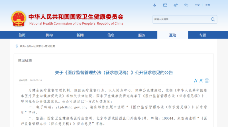 近日,國(guó)家衛(wèi)健委發(fā)布《醫(yī)療監(jiān)督管理辦法(征求意見稿)》(以下簡(jiǎn)稱《辦法》),并向社會(huì)公開征求意見。