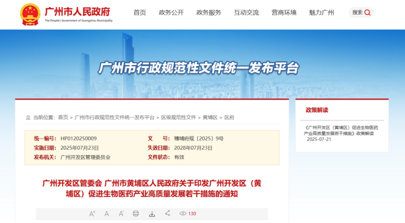 本政策措施自印發(fā)之日起施行,有效期3年。本政策措施所執(zhí)行的市級(jí)政策文件,其時(shí)效從其規(guī)定;執(zhí)行期間因上級(jí)法律法規(guī)、規(guī)章及政策調(diào)整導(dǎo)致本政策措施與上級(jí)規(guī)定不一致的,本政策措施相應(yīng)條款不再執(zhí)行。《廣州開發(fā)區(qū)(黃埔區(qū))促進(jìn)生物醫(yī)藥產(chǎn)業(yè)高質(zhì)量發(fā)展辦法》(穗埔府規(guī)〔2024〕4號(hào))同時(shí)廢止。