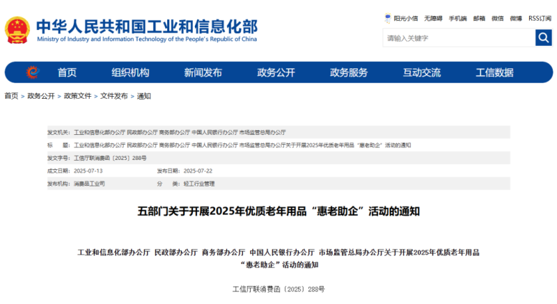 近日,國家工信部、民政部等五部門發布《關于開展2025年優質老年用品‘惠老助企’活動的通知》(以下簡稱《通知》),以全面落實國務院辦公廳《關于發展銀發經濟增進老年人福祉的意見》,持續推動老年用品增品種、提品質、創品牌,大力提升老年用品供需適配能力。《通知》具體內容如下: