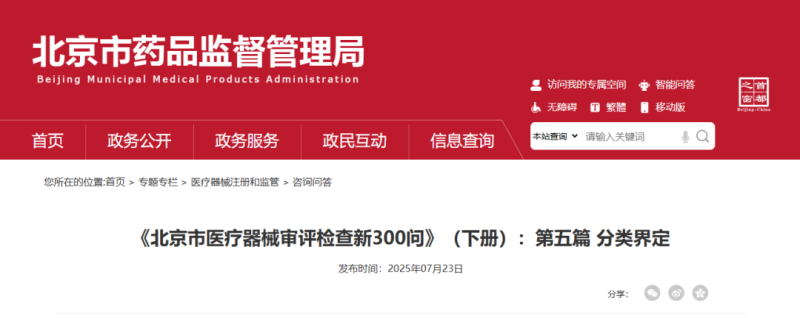 自今年6月以來,北京市醫療器械審評檢查中心持續推出了《北京市醫療器械審評檢查新300問》(下冊),此前我們已轉載了有源產品、質量管理體系、創新醫療器械的相關內容,本期文章我們繼續轉載有關“分類界定”的6個咨詢問答,大家別忘收藏備用哦