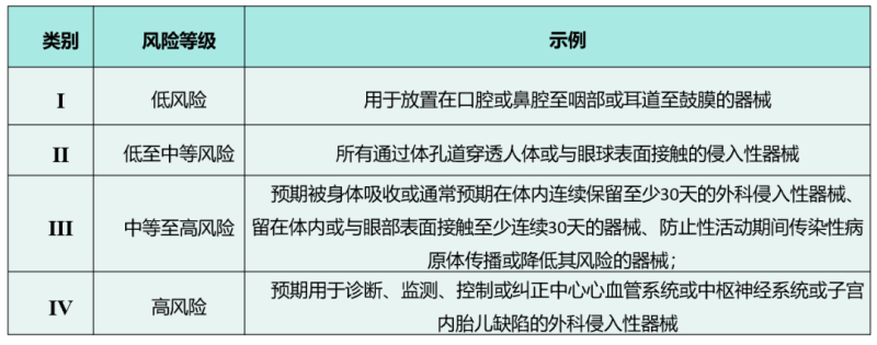 在《醫療器械注冊指南》中,加納FDA根據產品風險從低到高,將醫療器械分為Ⅰ、Ⅱ、Ⅲ、Ⅳ四個風險等級下表列出了醫療器械的四個風險類別,企業可根據示例內容對產品類別進行大致判斷。另外在《醫療器械注冊指南》中,還列出了醫療器械分類的16條具體規則,根據這些規則可以更明確地判斷產品類別。