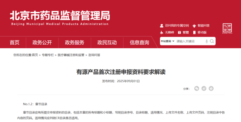 9月1日,北京市藥監(jiān)局發(fā)布《有源產品首次注冊申報資料要求解讀》(以下簡稱《要求》),我們將其部分內容轉載如下: